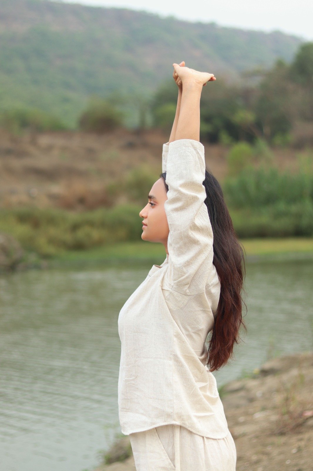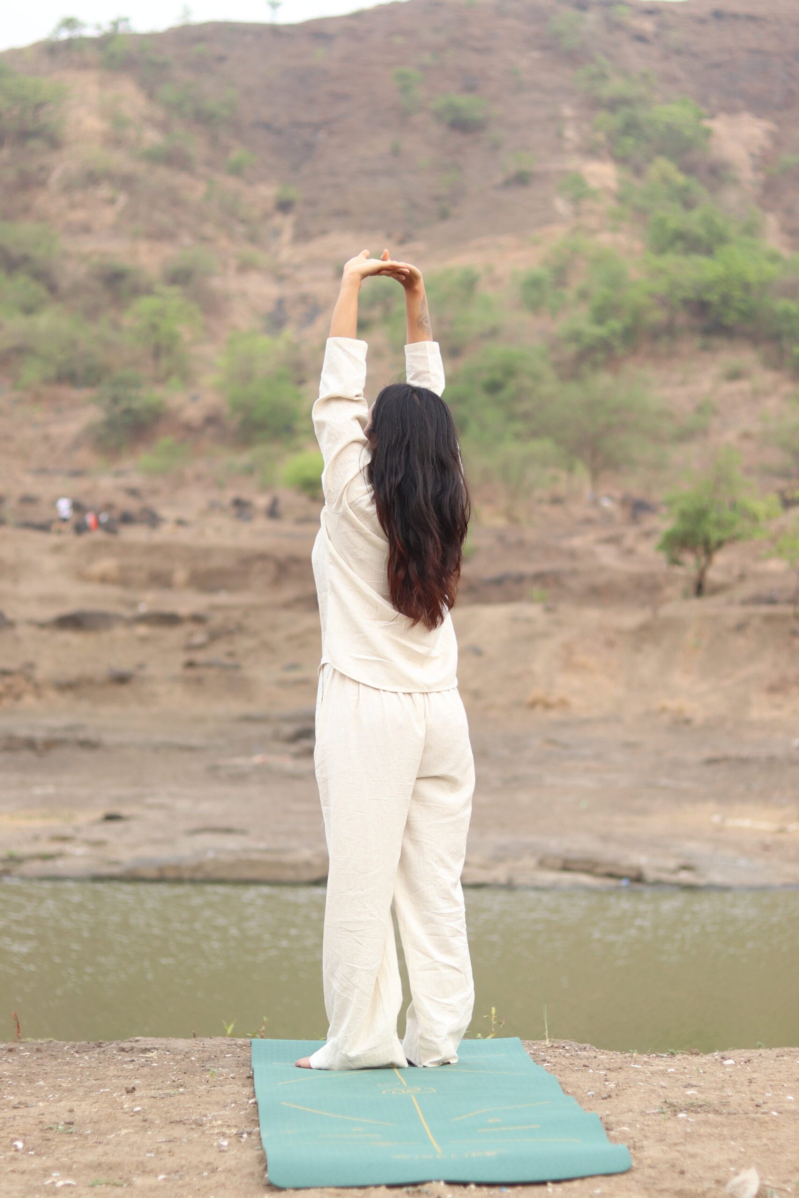 This coordinated set is made from handwoven khadi cotton, offering all-day comfort with effortless elegance. Perfect for yoga, travel, and relaxed living.
